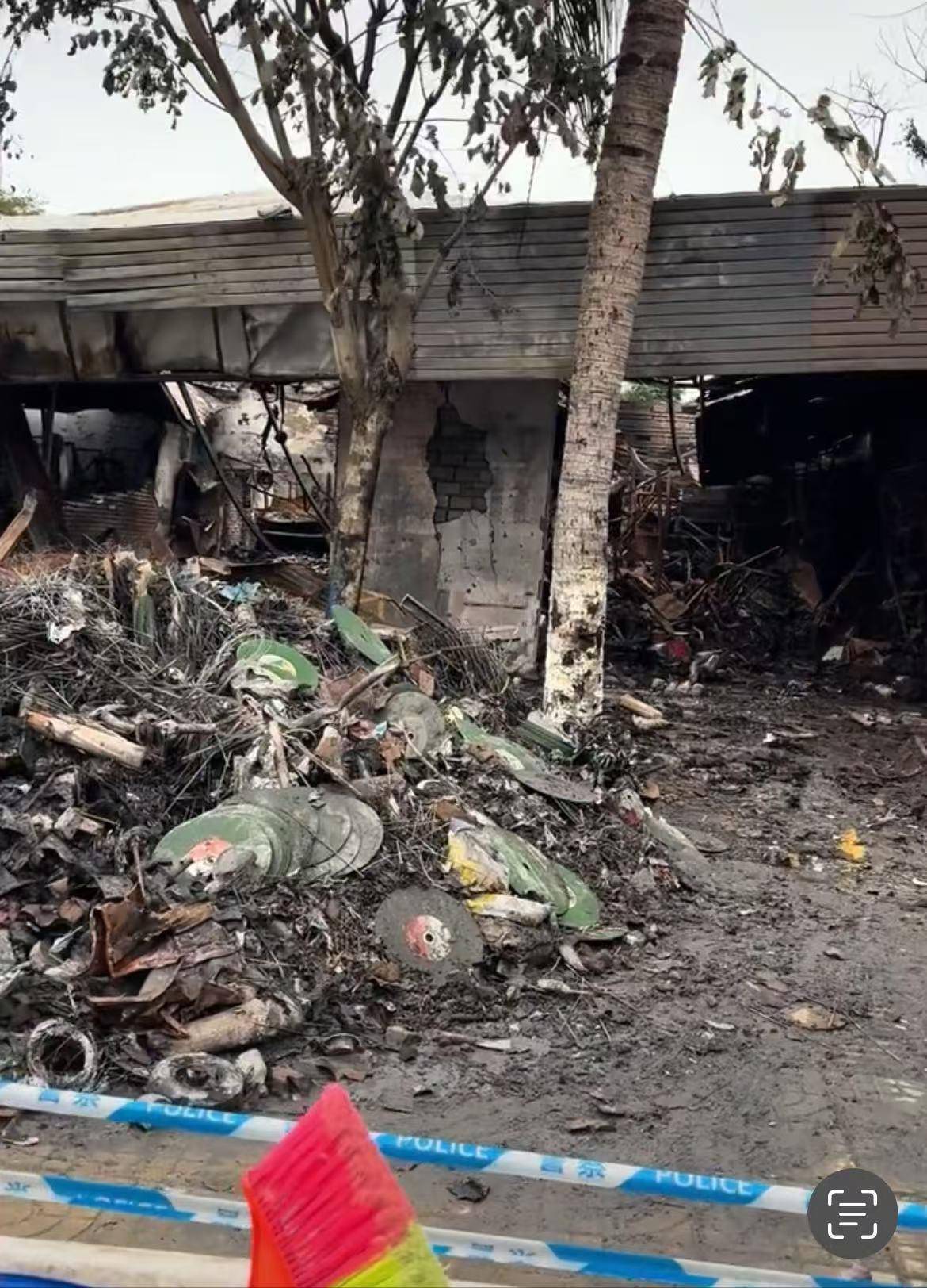 该目击者发布的视频中,火灾后现场拉起了警戒线。